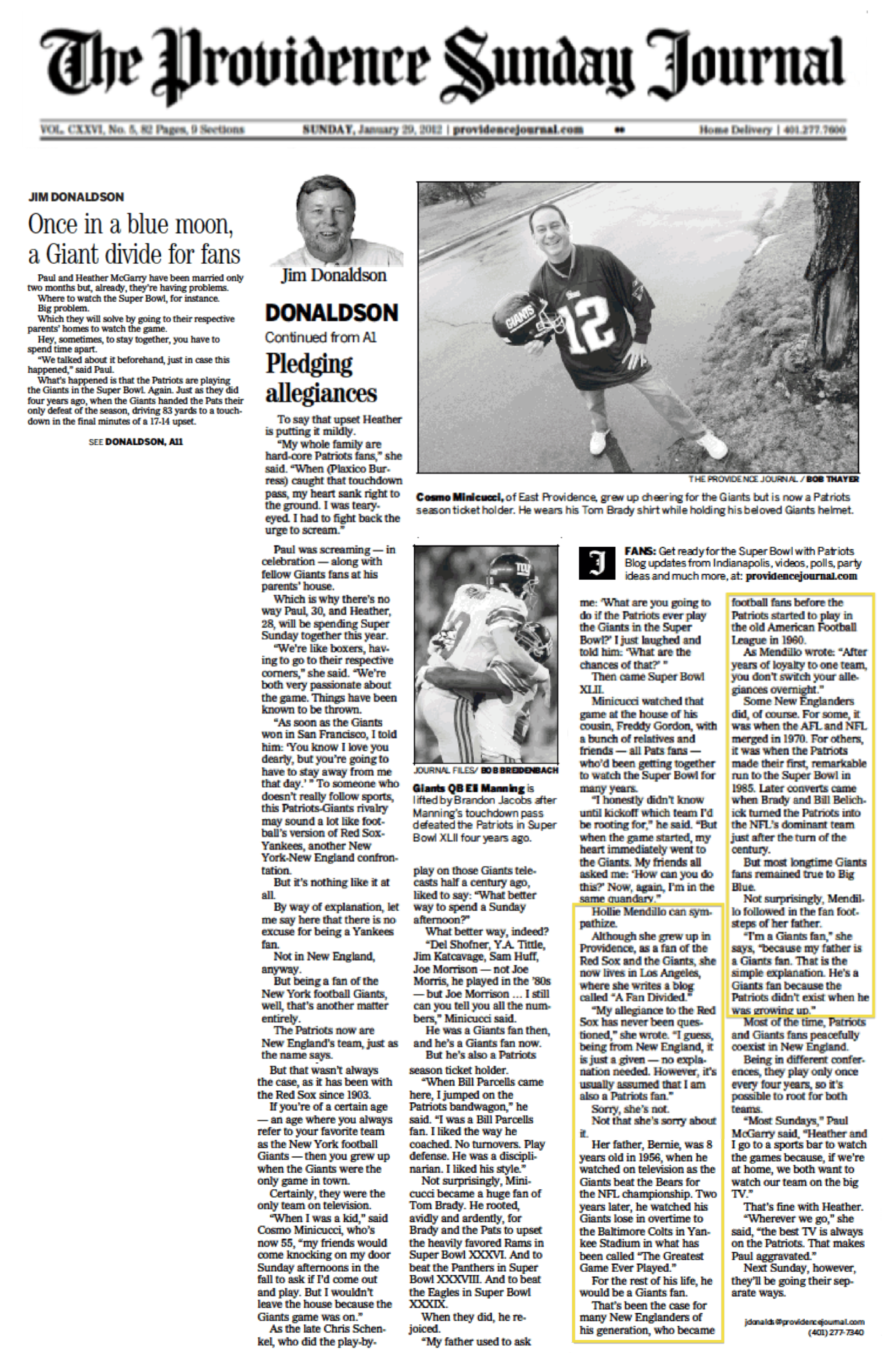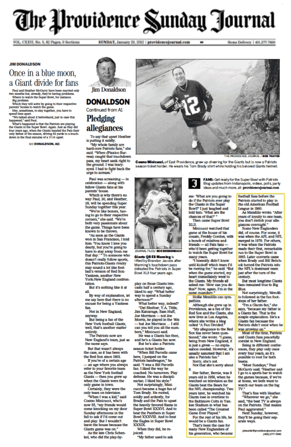 A Fan Divided in the Providence Journal